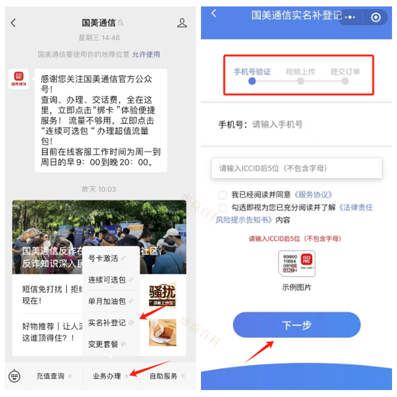 国美通信卡补录实名入口在公众号营业厅—业务办理—实名补登记。